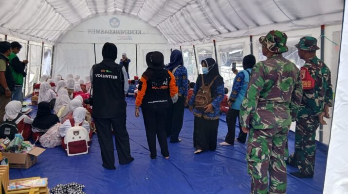 Lumajang — Upaya pemulihan kondisi psikologis anak-anak pengungsi akibat erupsi Gunung Semeru terus dilakukan oleh berbagai pihak. Pada Senin malam (1/12/2025), Babinsa Oro-oro Ombo