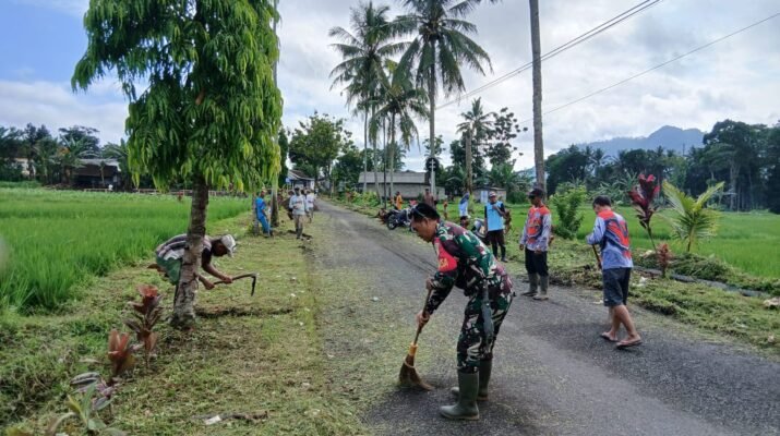 Aksi Bersih Desa Kebonrejo: Tiga Pilar TNI-Polri-Pemerintah dan Warga Bersatu Bersihkan Bahu Jalan Dan Irigasi