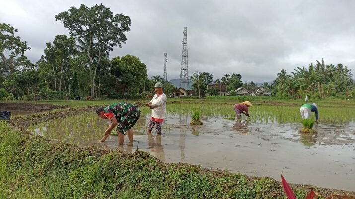 Sinergi Hijau: Babinsa Kalibaru Kulon Turun ke Sawah, Tanam Padi Bersama Warga, Perkuat Ketahanan Pangan Lokal.