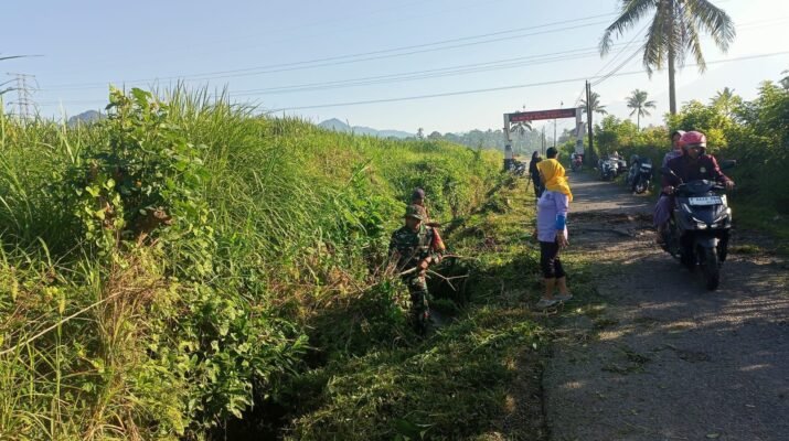 Kalibaru, Banyuwangi – Dalam upaya mitigasi dan kesiapsiagaan menghadapi peningkatan intensitas curah hujan, Babinsa Desa Kalibaru Manis dari Koramil 0825/05 Kalibaru, Serka Sutiono, mempelopori