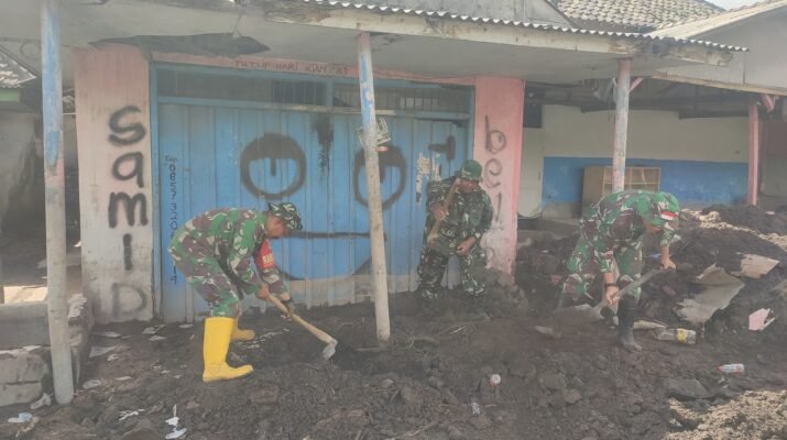 Percepatan Pemulihan: TNI Lumajang Gotong Royong Bersihkan Material Lahar di Rumah Warga