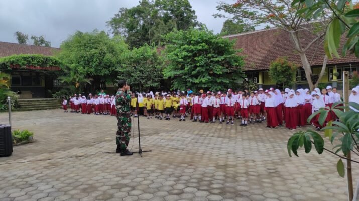 Peltu Mukhsin Koramil 0825/05 Kalibaru Tanamkan Nilai Kebangsaan Sejak Dini di Sekolah Dasar