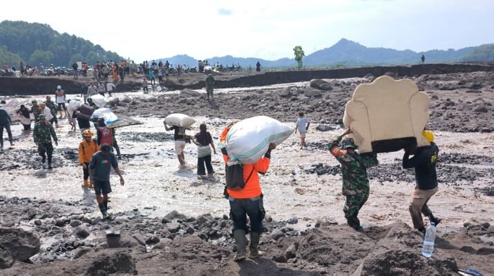 Lumajang — Di tengah derasnya banjir lahar dingin Gunung Semeru, prajurit TNI dari Kodim 0821/Lumajang kembali menunjukkan dedikasi tanpa batas dalam melindungi keselamatan masyarakat.