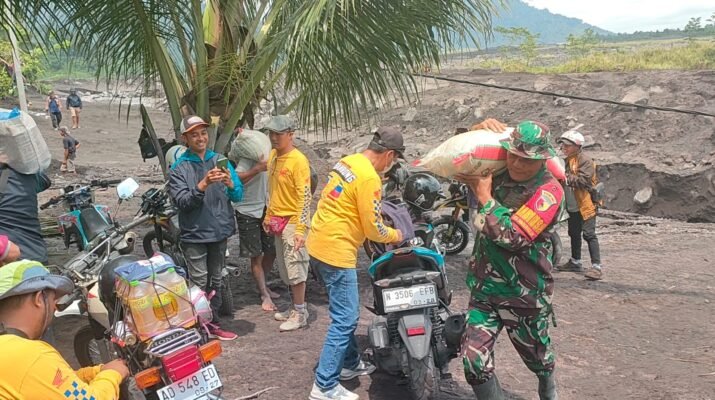 Babinsa Sumberwuluh dan Relawan Gerak Cepat Salurkan Logistik ke Warga Terdampak Lahar Dingin Semeru