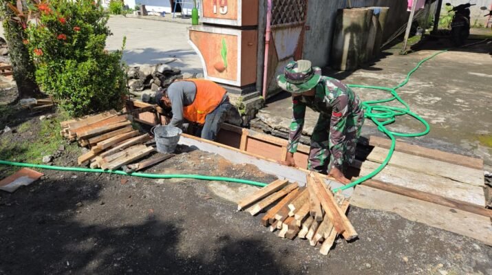 Aktivitas ini merupakan langkah krusial dalam memastikan kualitas dan ketahanan drainase yang dibangun. Pemasangan bekisting dilakukan dengan teliti oleh prajurit TNI dan warga, menunjukkan