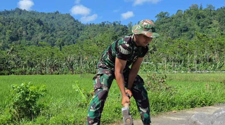“Keterbatasan Bukan Halangan: Prajurit TMMD Bangun Irigasi demi Harapan Petani Lebakharjo” Malang – Dengan hanya bermodalkan alat sederhana seperti palu pecah batu, anggota