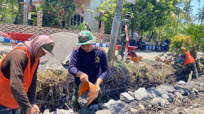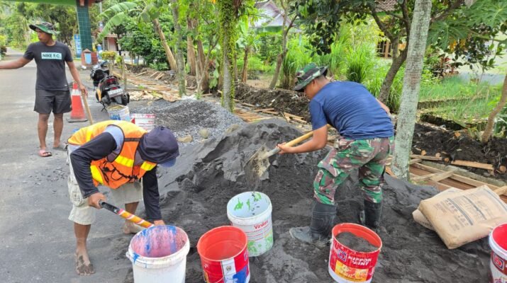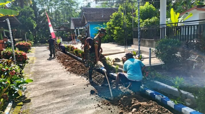 Satuan Tugas (Satgas) TNI Manunggal Membangun Desa (TMMD) KE-126 Kodim 0818/Malang-Batu terus menunjukkan progres signifikan dalam pembangunan infrastruktur desa. Anggota Satgas dari Yon Armed 8/Udhata Yudha bersama warga Dusun Krajan 1B, Desa Lebakharjo, Kecamatan Ampelgading, Kabupaten Malang,